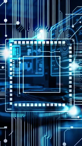Glowing Cpu Chip With Circuitry And Data Streams In Futuristic Setting Videos