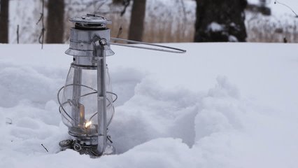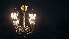 Glowing Lantern Casting Warm Dusk Glow Through Falling Snow Over Rooftops Vertical Video Videos