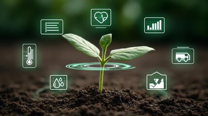 Glowing Technology Icons Representing Environment Concepts Videos