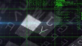Green Digital Grid With Coding Symbols And Holograph Overlay Videos
