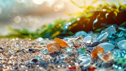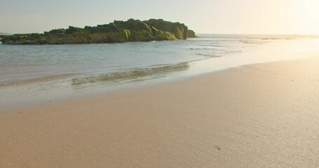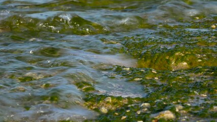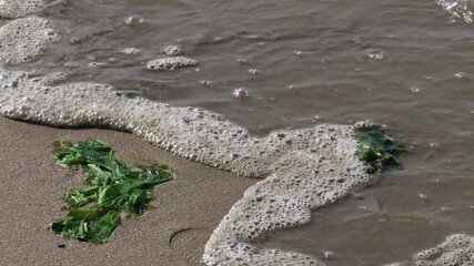 Green Seaweed On Sandy Beach With Ocean Waves In Background Videos