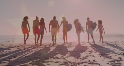 Group Of Friends Enjoying Beach With Croatia Flag Overlay Videos