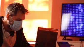 Hacker In Mask Accessing Laptop With Virtual Covid 19 Data Videos