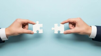 Hands Assembling Puzzle Pieces On Blue Background Videos