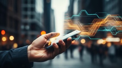 Hands Holding Smartphone With Digital Overlay Elements Videos