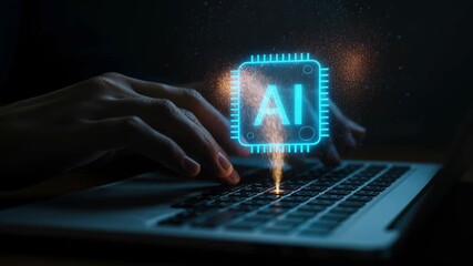 Hands Typing Laptop Overlaid With Digital Data And Code Videos