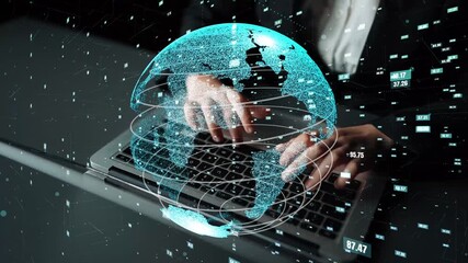 Hands Typing Laptop Overlaid With Digital Data And Code Videos