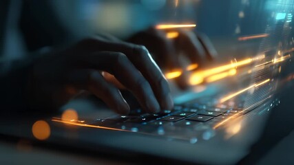 Hands Typing On Keyboard With Digital Network Overlays Videos