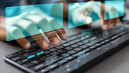 Hands Typing On Keyboard With Futuristic Digital Interface Videos