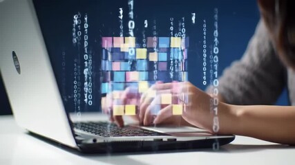 Hands Typing On Laptop With Digital Network Overlay Videos