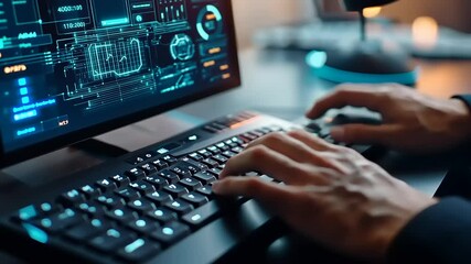Hands Typing With Futuristic Virtual Interface Animation Videos