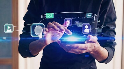 Hands Using Smartphone With Digital Data Overlay Concept Videos