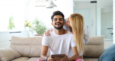 Happy Couple Enjoying Tablet Time On Sofa At Home Videos
