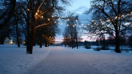 Happy New Year Animation With Fairy Lights In Snowy Landscape Videos