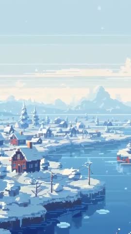 snowy coastal village