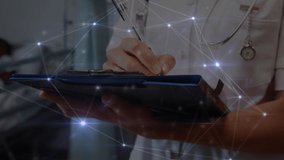 Healthcare Professional Using Stethoscope Amidst Digital Data Interface Videos