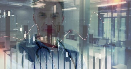 Healthcare Professionals Analyzing Medical Data With Financial Graph Overlay Videos