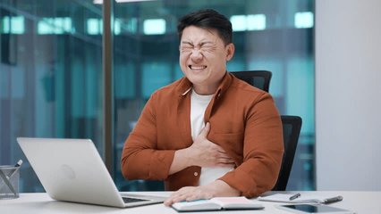 man clutching chest