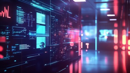 High Tech Server Room With Digital Data Interface Videos