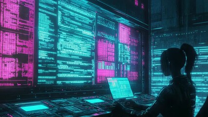 High Tech Virtual Interface In Server Room For Data Technology Videos