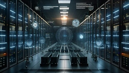 High Tech Virtual Interface In Server Room For Data Technology Videos