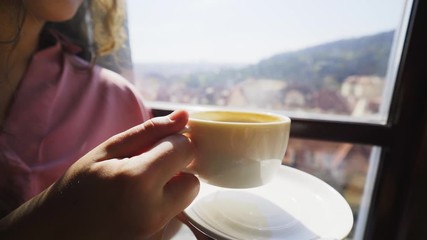 sipping coffee