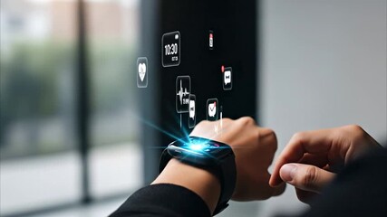 Holographic Interface With Digital Clock In Office Videos