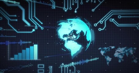 Holographic Rotating Globe With Data Analytics Frames Videos