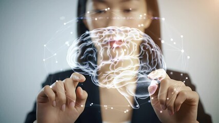 Illuminated Tech Brain Hologram In Business Interaction Videos