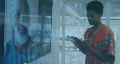 Innovative Businesswoman Analyzing Data With Futuristic Graphics Videos