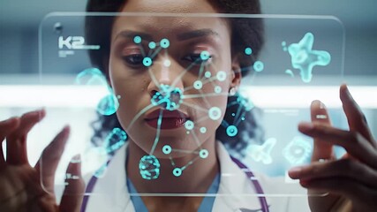 Innovative Doctors Analyzing Futuristic Data Interface Videos