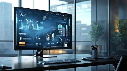 Innovative Financial Data Visualization In Modern Office Workspace Videos