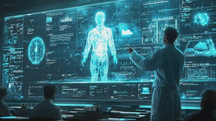 Innovative Medical Team Analyzing Futuristic Data Interface Videos