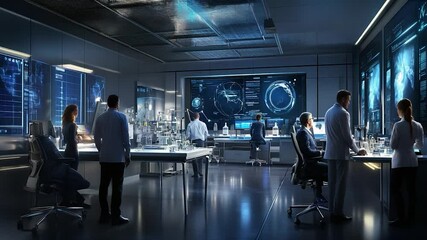 Innovative Scientists Analyzing Digital Data In Laboratory Videos