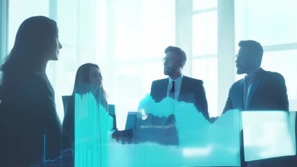 Innovative Team Analyzing Data With Futuristic Overlay Videos