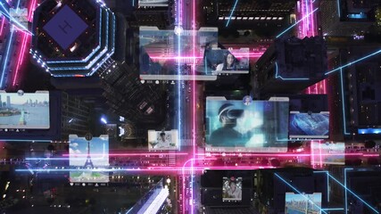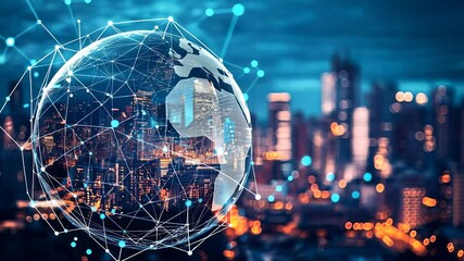 Interactive Cityscape With Network Connections Overlay Videos