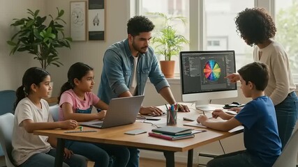 Interactive Digital Education Future Concept With Diverse Students Videos