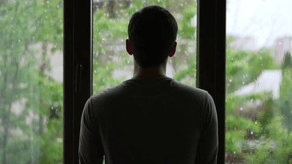 man gazing out window
