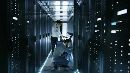 It Specialist Working On Laptop In Data Center Server Room Network Analysis Videos