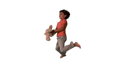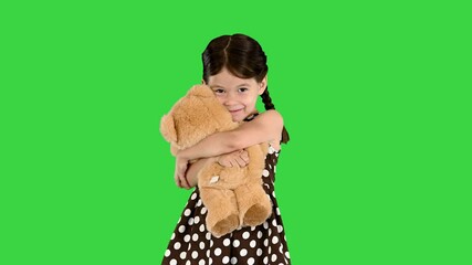 Joyful Child Hugging Teddy Bear On Green Screen Background Videos