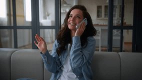 Joyful Friends Smiling And Talking On Comfortable Sofa Videos