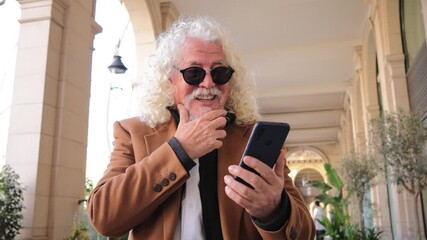 Joyful Senior Man Engaging With Technology On Smartphone Videos