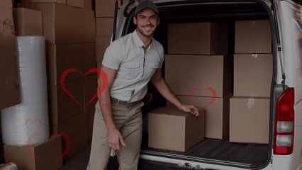 Joyful Warehouse Worker Surrounded By Floating Heart Graphics Videos