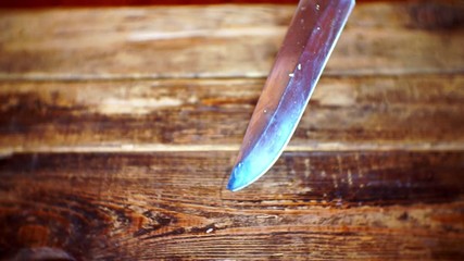 Kitchen Knives Falling On Rustic Wooden Surface Videos