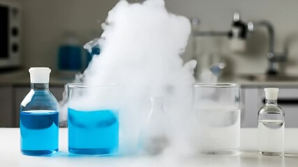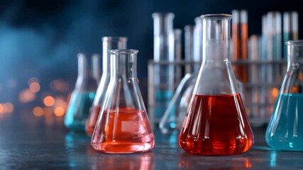Laboratory Experiment With Colored Liquids In Beakers Videos