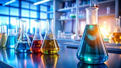 Laboratory Experiment With Colored Liquids In Beakers Videos