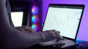 Laptop Displaying Ai Generated Candlestick Chart In Dark Environment Videos