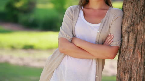 leaning on tree