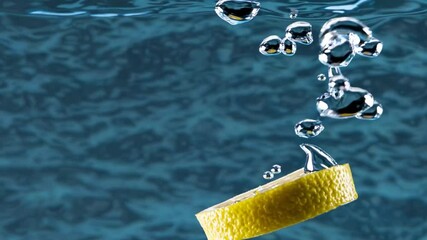 Lemon Splashing Into Water Creating Ripples And Bubbles Videos