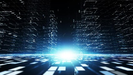 Looping Binary Codes On Blue Digital Background With Flare Effects Videos